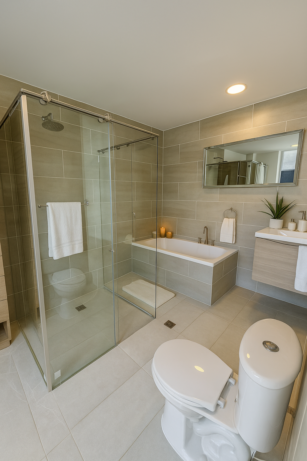 - 🪞 Baños en vidrio, completamente enchapados de techo a piso